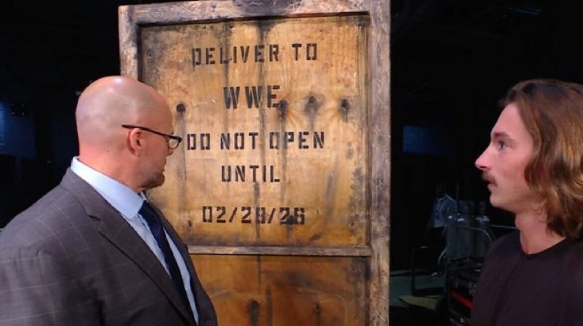 – Also during Monday’s WWE Raw in Memphis, TN., an interesting backstage segment took place where WWE Raw General Manager Adam Pearce came across a massive crate that read, “Deliver to WWE – DO NOT OPEN UNTIL 02/28/26.” Pearce told a crew worker to send it to SmackDown and have the blue brand G.M. Nick Aldis deal with it.