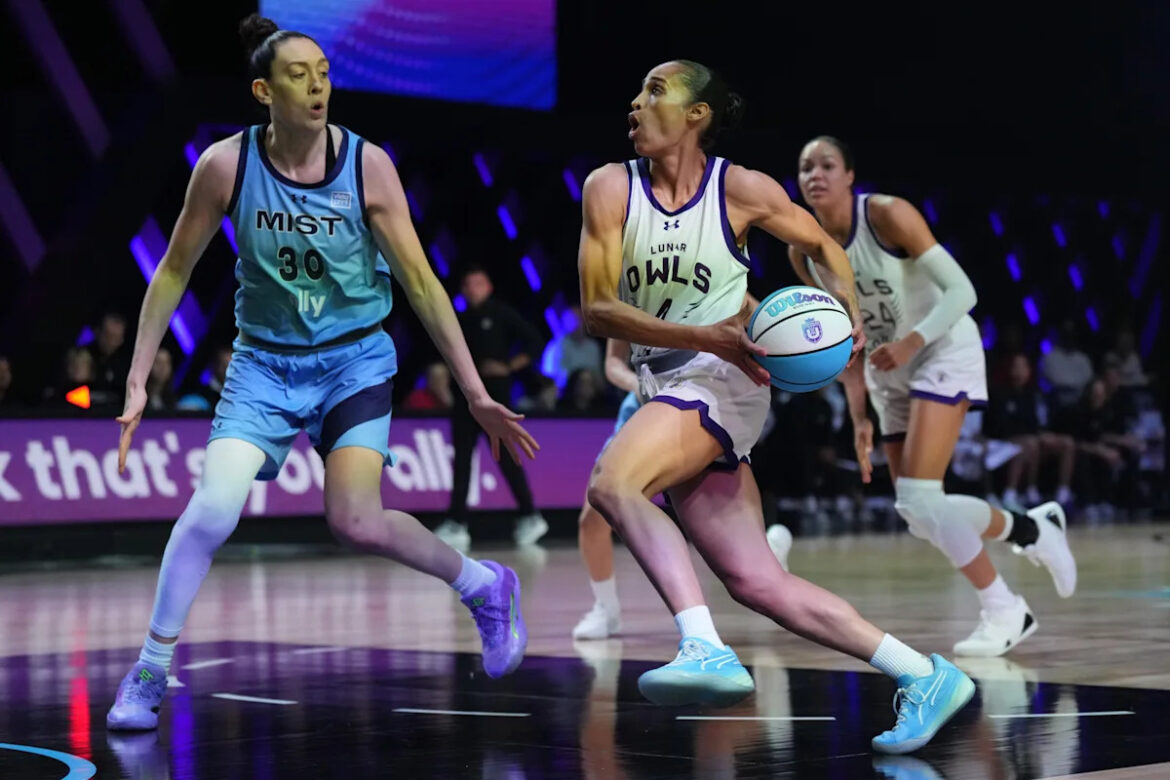 Skylar Diggins-Smith, with the basketball, joined Napheesa Collier and Breanna Stewart’s Unrivaled 3-on-3 league last winter.