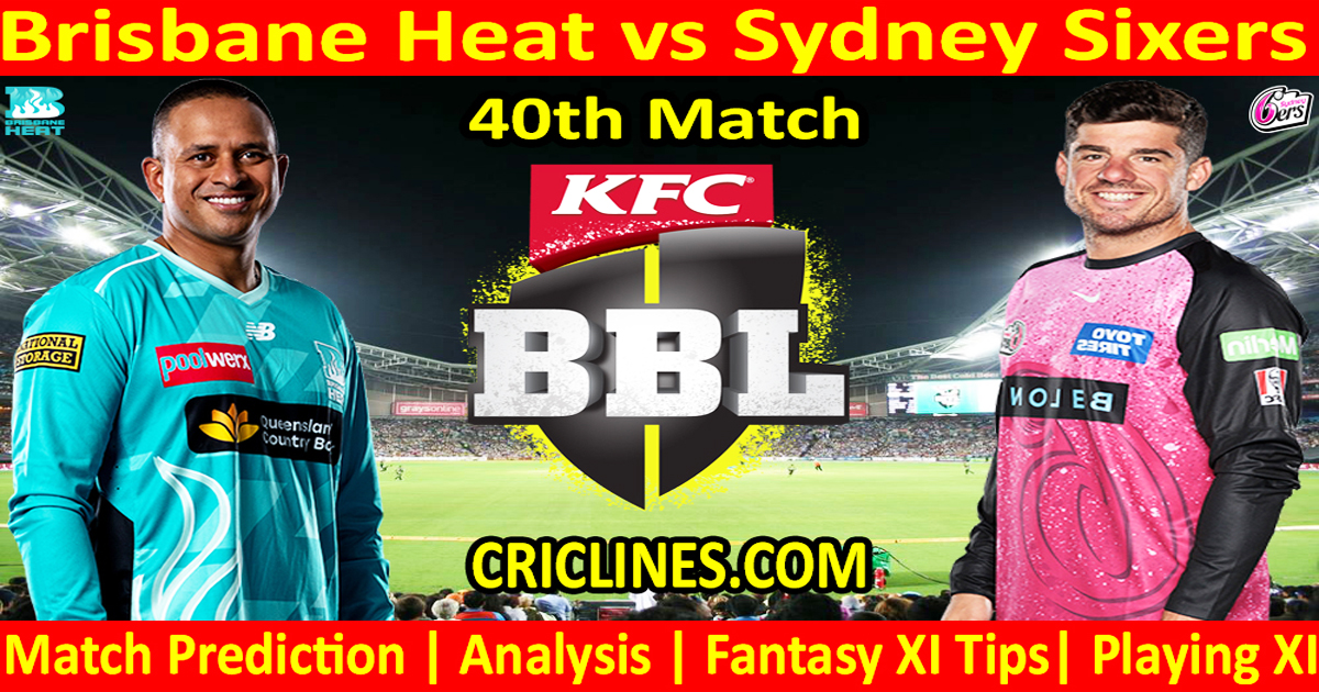 Dream11 Prediction for Brisbane Heat Sydney Sixers, 40th Match. After checking the latest player’s availability, the Dream 11 Team for this match of Brisbane Heat vs Sydney Sixers, is mentioned under.