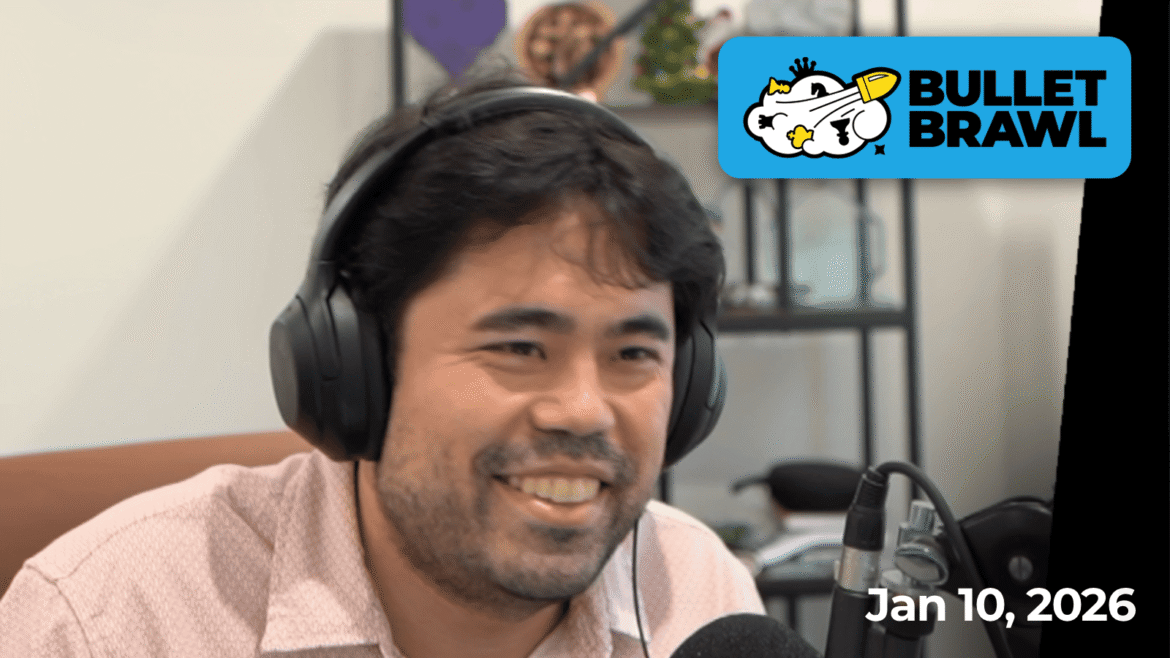 GM Hikaru Nakamura kept the Bullet Brawl ball rolling with his second straight win of 2026 after snatching the $400 first prize from GM Andrew Tang‘s grasp in the final moments of Saturday’s event. Tang dominated in the first half but slumped in the last 20 minutes, allowing Nakamura to mount a last-ditch comeback.