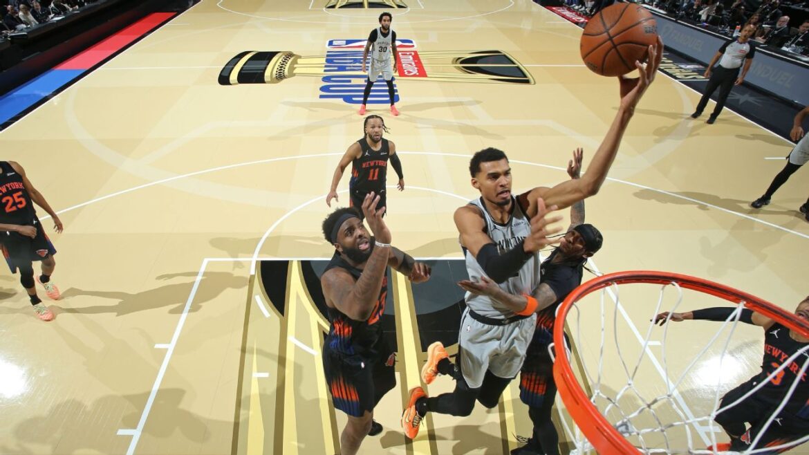 As the 2023 NBA Cup run introduced casual fans to Haliburton — a few months away from his All-Star debut and long before Haliburton earned a reputation as a clutch shotmaker — the last two rounds of the NBA Cup were an important showcase for Wembanyama. As anticipated as Wembanyama’s arrival as the No. 1 pick was, these cup games were among the most meaningful NBA games he has played to date. He responded with 22 points in 21 minutes in his return from a calf strain for Saturday’s upset win over the defending champion Thunder, during which San Antonio outscored Oklahoma City by 21 points, handing the Thunder only their second loss of the season.