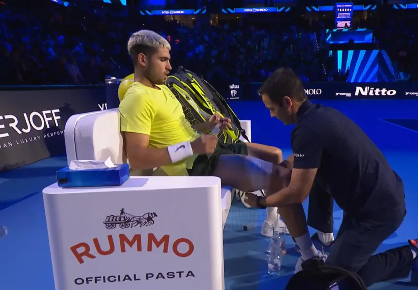 Carlos felt the pain in his right leg while battling against Jannik, requiring a medical timeout and revealing a hamstring injury that surfaced during the closing stages of the tournament.