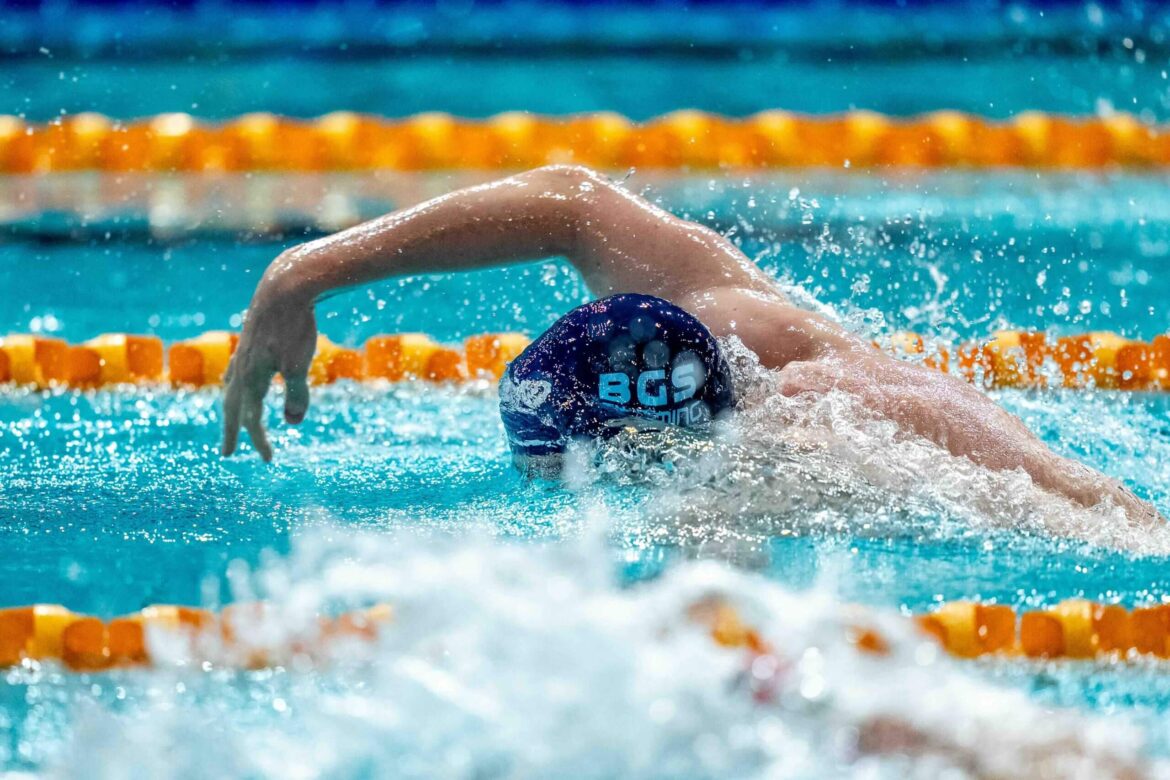 STRETCHED TO THE LIMIT: GBR’s Duncan Scott at full stretch at the Hancock Prospecting Queensland Championships.Photo Courtesy Wade Brennan (Swimming Queensland).