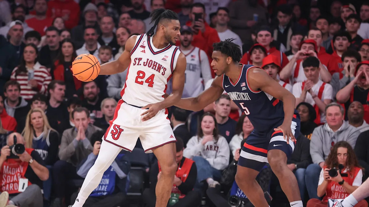 Home US SportsNCAAB Ejiofer leads No. 22 St. John’s past No. 3 UConn 81-72 at MSG, ending Huskies’ 18-game win streak