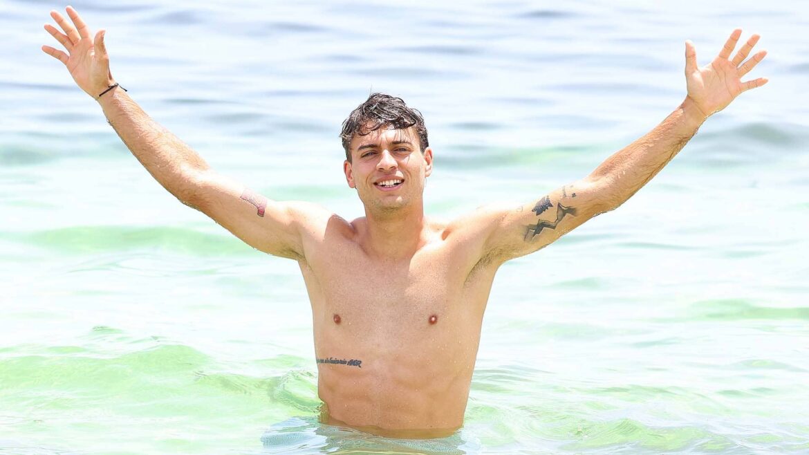 Flavio Cobolli in the water off Rottnest Island, Perth, ahead of the 2026 United Cup.