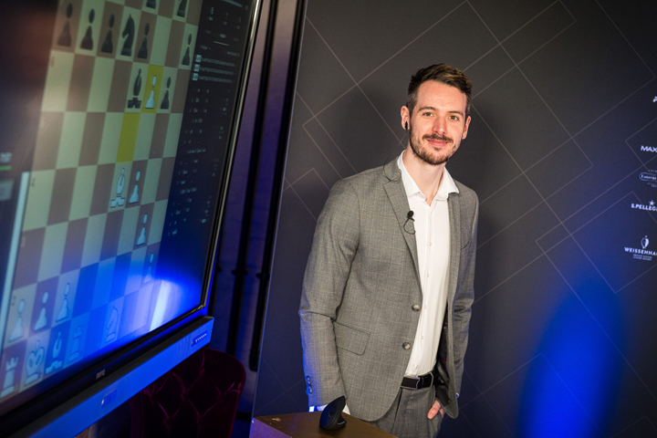 In round four, Huschenbeth lived up to his role as favourite once again. However, in the fifth round he was surprised by Diogo Duarte Guimaraes, who produced remarkably error-free play. Up to move 54 the game was absolutely level – the engine reported no notable swings at all. Then came the mistake. And it was not made by the FM – it was the GM who erred, and the game was already over six moves later.