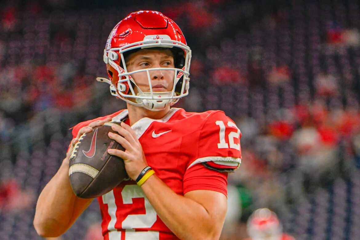 In addition to taking reps at quarterback, running back, and receiver, the 5’10”, 190 pound Swiss army knife also saw action at punt returner in practice. Houston aimed to maximize the quarterback’s speed, which clocked in at 23.7 miles per hour on the GPS tracking system. Accordingly, the EA Sports College Football 26 video game tabbed him as the fastest quarterback in the country with a 92 overall speed.