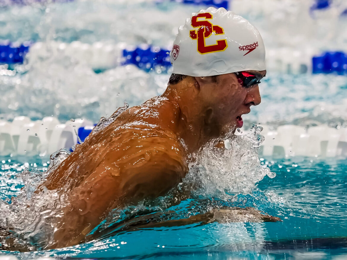 He made the B final of the 100 breast at NCAAs as a freshman in 2016, then became the Pac-12 champion in the event in 2017. He was third in the event at NCAAs in a time of 51.40 and helped USC’s 400 medley relay finish fourth and its 200 medley relay place 11th.