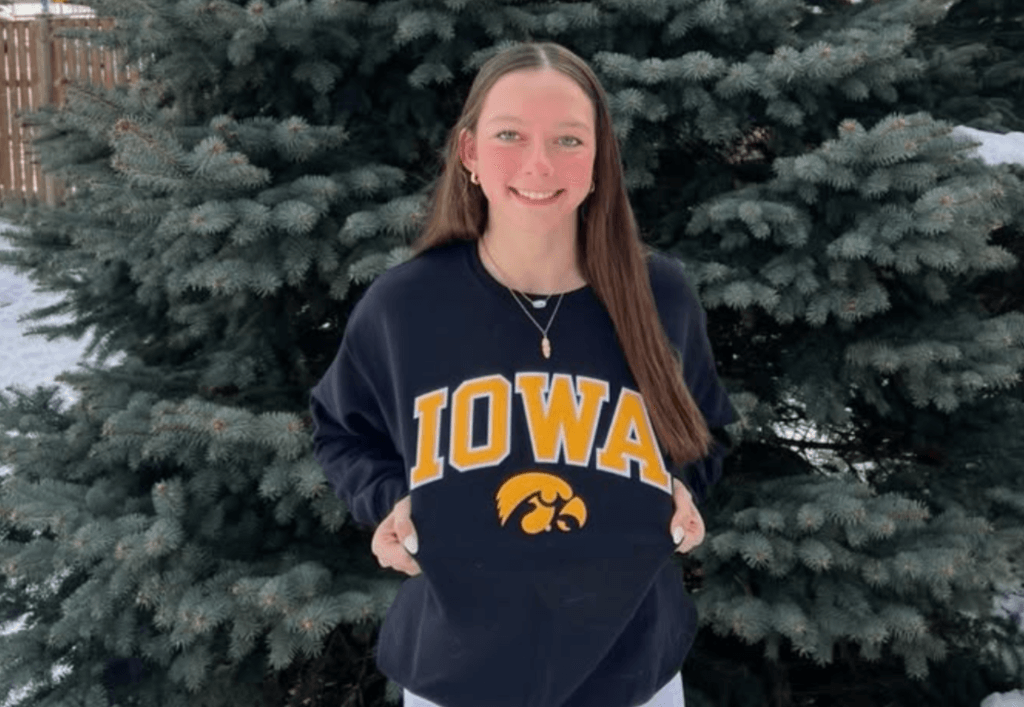 “I’m so incredibly excited to announce my verbal commitment to continue my academic and athletic career at the University of Iowa!! I’d like to thank my family, friends, and Coach Barber, Dave and Brian for supporting and helping me through this process. I would also like to thank Coach Nate and the entire Iowa coaching staff for this amazing opportunity. Go Hawkeyes!!”