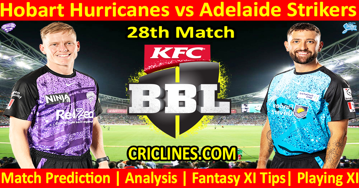 Dream11 Prediction for Hobart Hurricanes Adelaide Strikers, 28th Match. After checking the latest player’s availability, the Dream 11 Team for this match of Hobart Hurricanes vs Adelaide Strikers, is mentioned under.