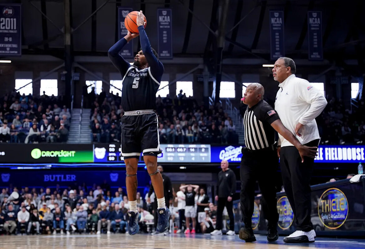 What wasnโt happening during this sequence? Offensive execution from the home team that wasnโt from the stripe. What was happening? Butler was living through the familiar exasperation and agony of missing layups. More than five minutes of gameplay elapsed before the Bulldogs scored another field goal. At the 10:45 mark, Mulreadyโs catch-and-shoot three put Georgetown up 61-50.