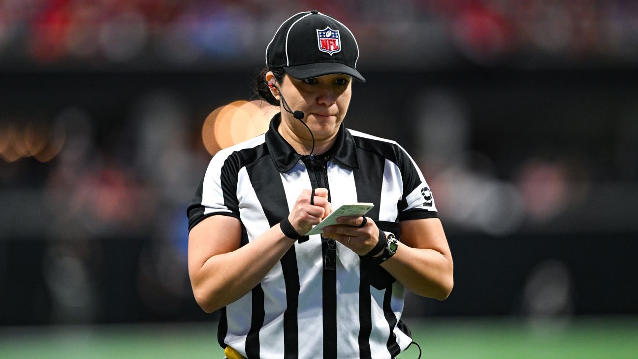 One can argue that Austin’s gentle razzing served as a welcome to the big-time moment for Tovar, and she has made the most of it. The referee who began her second NFL season earlier this month fostered an early and deep love of football into a pioneering path that she hopes others like her will follow. It’s a fitting calling for the 34-year-old first-generation American and daughter of Mexican immigrants, who likes to say that she learned the rules of football before she could speak English.