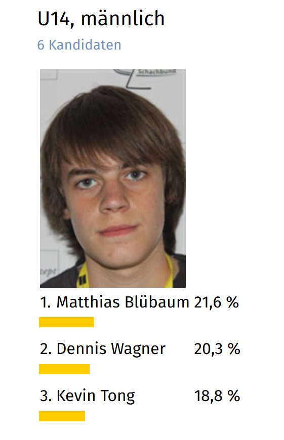 Blübaum attracted attention early on as a major talent within the German Chess Federation (DSB – Deutscher Schachbund), was admitted to its junior development squad at the age of 12, and at just 14 was nominated for a DSB representative team for the first time.