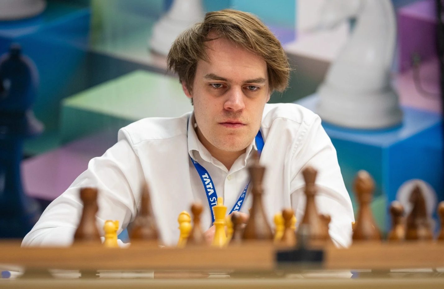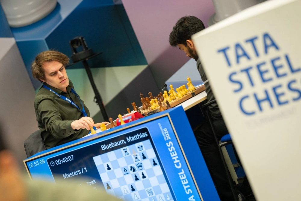 Now, however, Blübaum is stepping on the gas. At the Grand Swiss tournament in the autumn of last year, Blübaum finished unbeaten in second place behind Anish Giri, defeated world-class grandmasters Erigaisi and Praggnanandhaa among others, and thus qualified for the Candidates Tournament as the third German after Robert Hübner and Wolfgang Uhlmann. Toward the end of the event, Blübaum held a decisive game against Vincent Keymer to a draw. That success earned him an invitation to the Tata Steel Tournament, where he is now astonishing the competition.