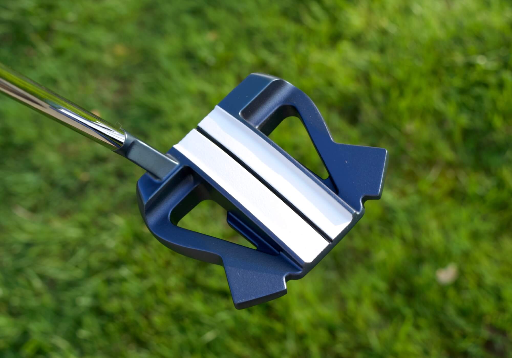 The same can be said for the head. The alignment lines are a great visual aid especially if you’re like me, a fan of alignment golf balls. Additionally, the overall shape of the mallet will look very familiar to anyone who has ever liked or used a TaylorMade Spider. I’m not calling it a clone but the comparison is unavoidable. Another area I think elevates this over the HP-Series #6 is the sole. If you recall, I really didn’t like the HP-Series #6’s sole and thought it looked, for the lack of a better term, cheap. With the Wingman, that couldn’t be further from the truth. The reflective blue sole is unique and, in my opinion, really cool.