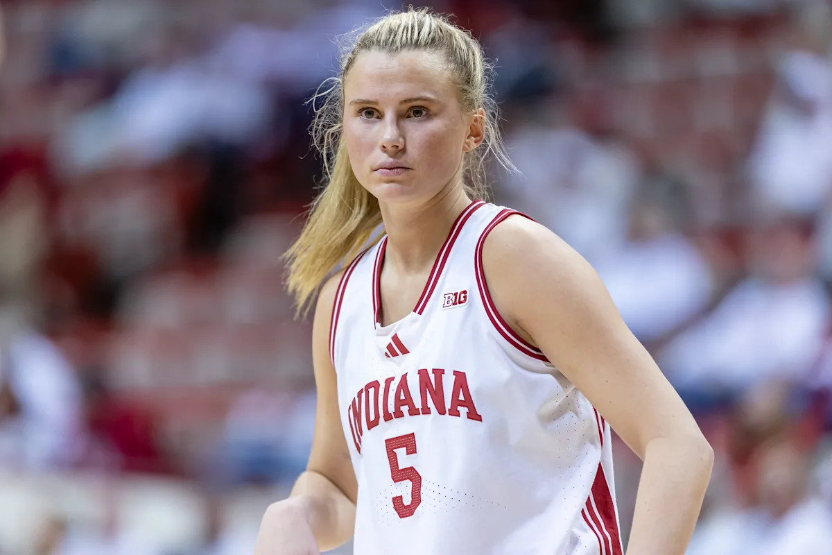 BLOOMINGTON, INDIANA – JANUARY 29: Lenée Beaumont #5 of the Indiana Hoosiers looks on during the game against the Michigan Wolverines at Simon Skjodt Assembly Hall on January 29, 2026 in Bloomington, Indiana. (Photo by Michael Hickey/Getty Images) | Getty Images