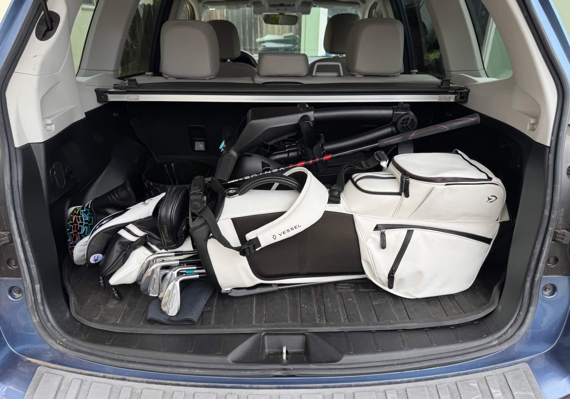 It does fold up smaller than I expected. For reference, the shot above is the Robera Pro in the back of my Subaru Forester. Here is a shot with my bag, too.