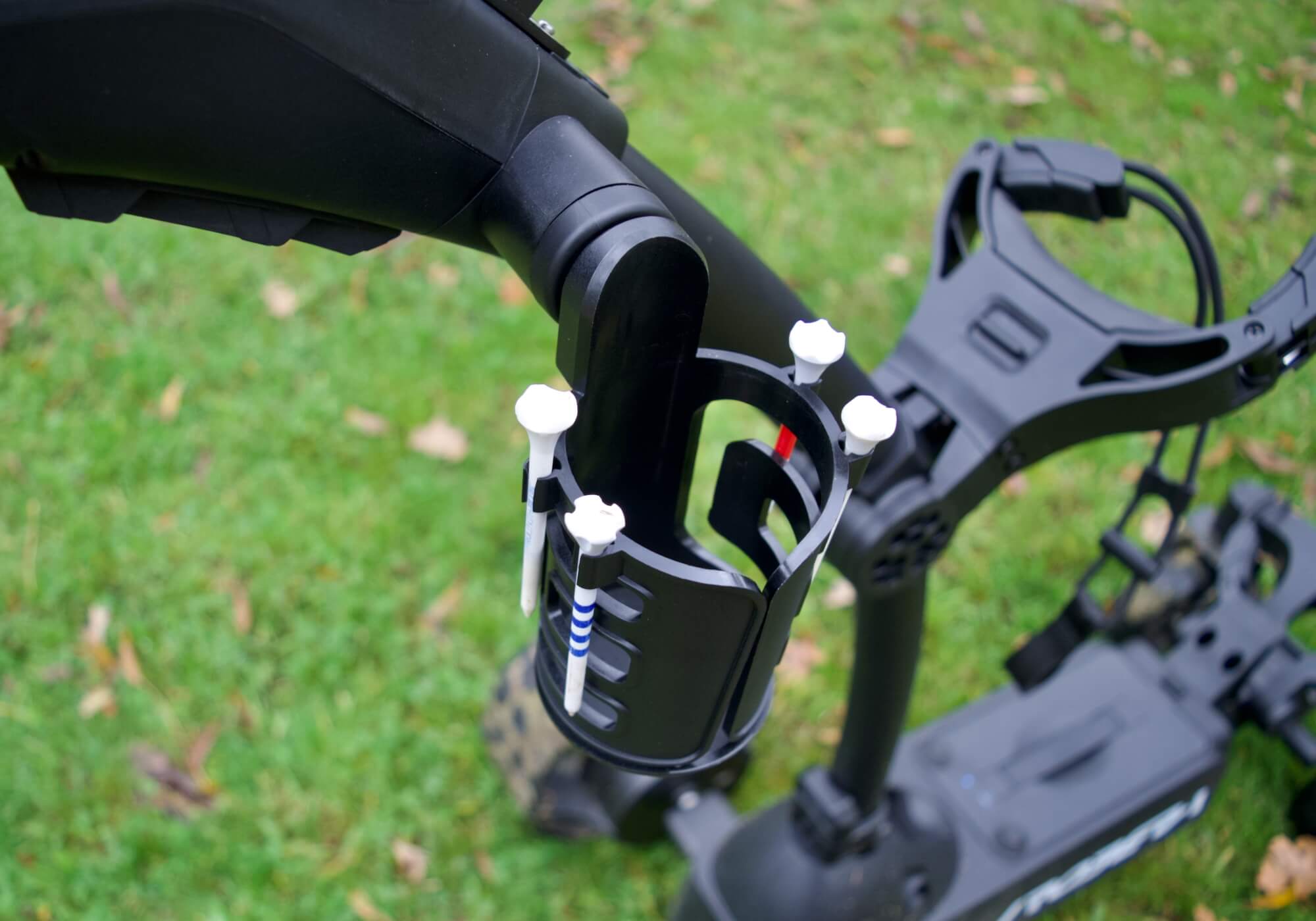 The console has attachment points for accessories. I found the scorecard holder and beverage holder to be especially useful.