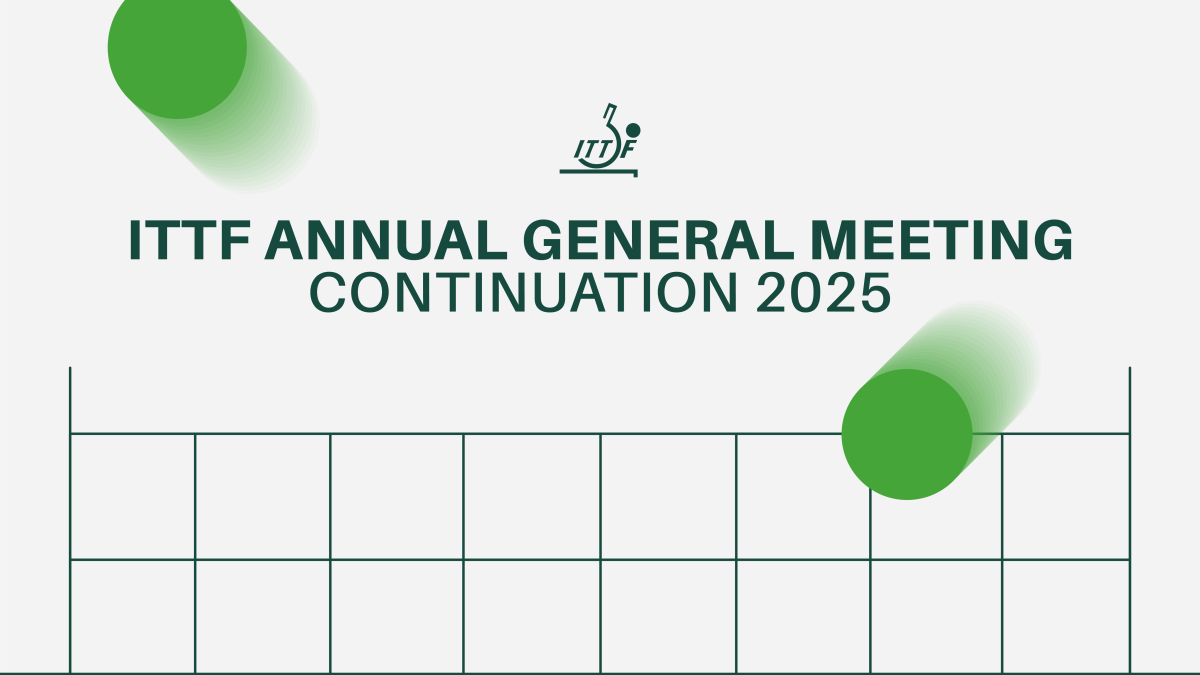 Following the decision of the ITTF Executive Board on 20th September 2025, and in accordance with the ITTF Statutes, the International Table Tennis Federation will hold the continuation of the ITTF Annual General Meeting (AGM) 2025 in a fully online format on 15th November 2025 at 10:30 UTC.