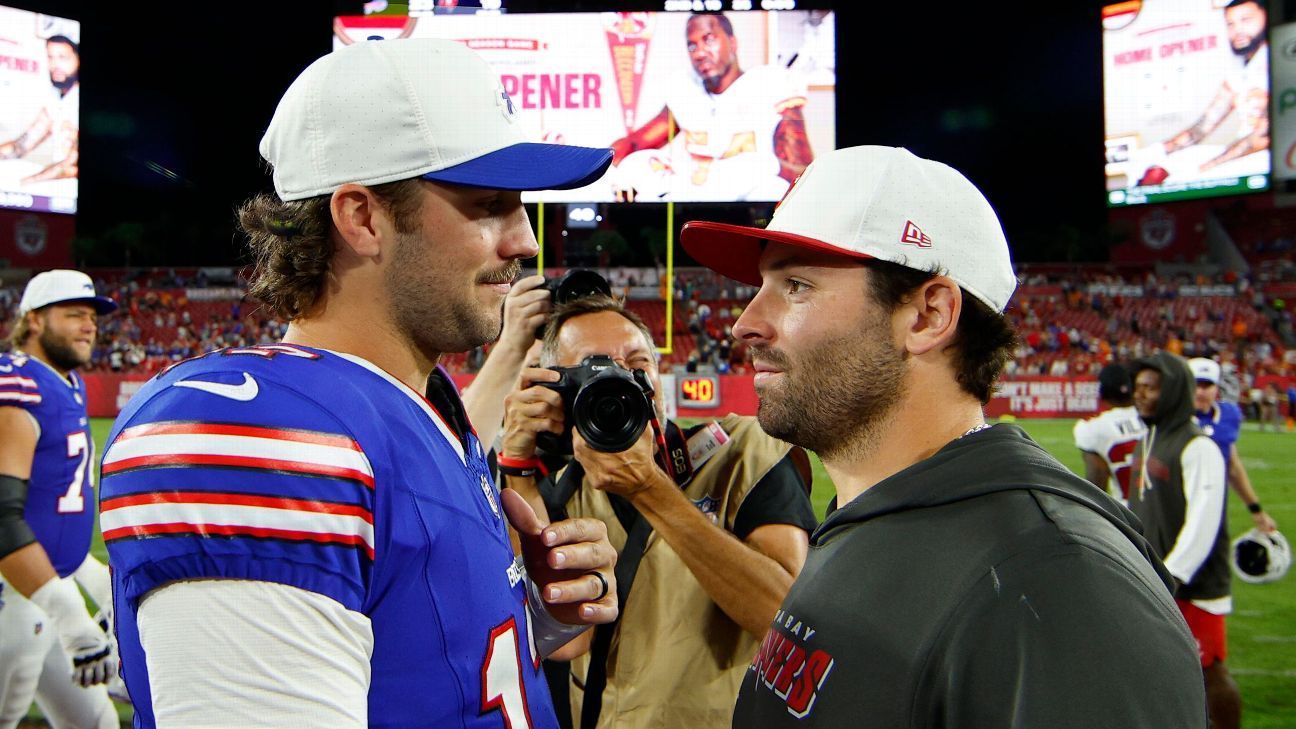 Mayfield was selected first in the 2018 NFL draft by the Cleveland Browns, and Allen was the seventh pick by the Bills. Mayfield won the first meeting between the quarterbacks in 2019 (Browns 19, Bills 16), then Allen won the second in 2023 (Bills 24, Buccaneers 18). Plenty is on the line when they meet again in Orchard Park as the Bills look to stay within reach of the New England Patriots (1.5 games back), and the Buccaneers try to maintain their 1.5-game lead in the NFC South.