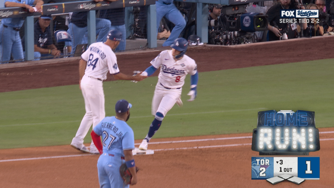 Kiké Hernández hit a solo homer that trimmed the Los Angeles Dodgers’ deficit against the Toronto Blue Jays to 2-1.