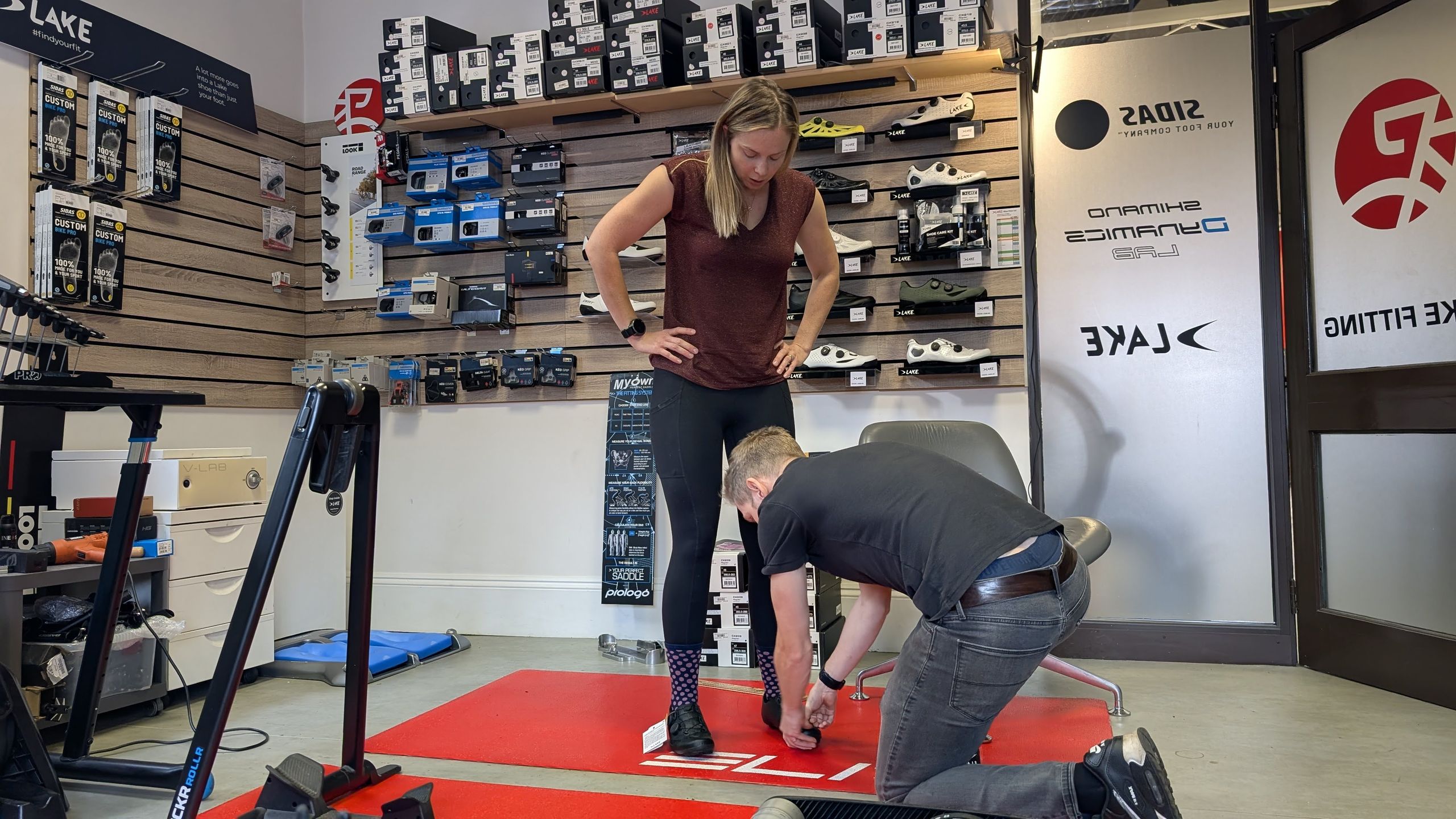 As mentioned, I was looking to swap my cycling shoes having developed foot pain after my second pregnancy, more specifically, a morton’s neuroma which is the thickening of a nerve between two toes. The condition is exacerbated (and sometimes even caused) by narrow shoes; whilst mine was caused by a combination of pregnancy weight, relaxin hormone and high arches, I was seeking a shoe that would let my toes move to avoid aggravating it. I was measured up for the shoes by bike fitter Paul Drake at Maison du Velo, a Lake dealer based in Reigate, Surrey, visiting a few weeks later to pick up the shoes and have some custom Sidas insoles moulded.
