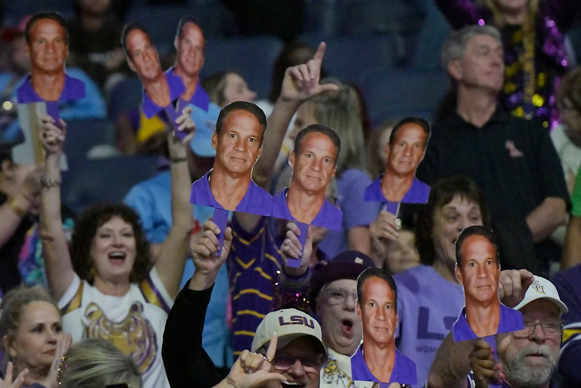 The announced attendance for the LSU-Ole Miss game was 7,424, the second-largest home crowd this season for the Rebels women’s basketball team. Some of the LSU fans in attendance held up cutouts of Kiffin’s head during the game.