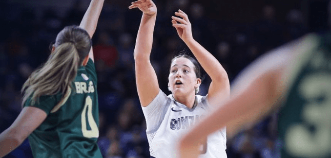 The redshirt freshman forward is running away as the best young talent in the West Coast Conference. New Zealand’s Lauren Whittaker had a spectacular weekend in Fort Myers, Florida, at Coconut Hoops, being named to the All-Tournament Team after averaging 25.0 points, 9.0 rebounds, and 1.5 steals per game for the Zags.