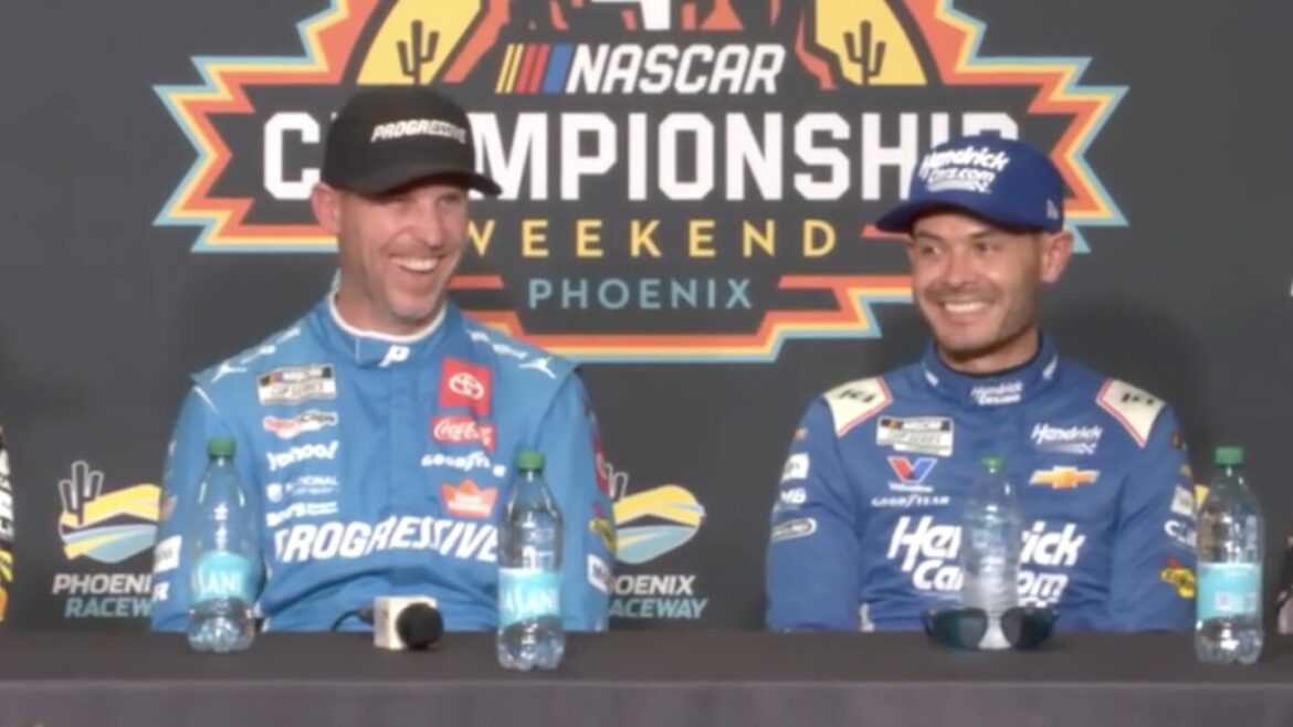 All four title contenders were on the stage together after Cup qualifying, which saw Denny Hamlin win the pole. While the 22-minute session started slow with generalities, the mood eventually changed with Hamlin having fun with the media and then his fellow competitors, lightening the mood a day before they will race for the title Sunday (3 p.m. ET on NBC and Peacock).
