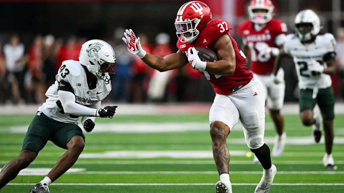 Sarratt’s first touchdown on a 24-yard play put Indiana ahead 14-10 in the second quarter. Sarratt’s 27-yard TD reception gave the Hoosiers a 35-10 lead in the third quarter.