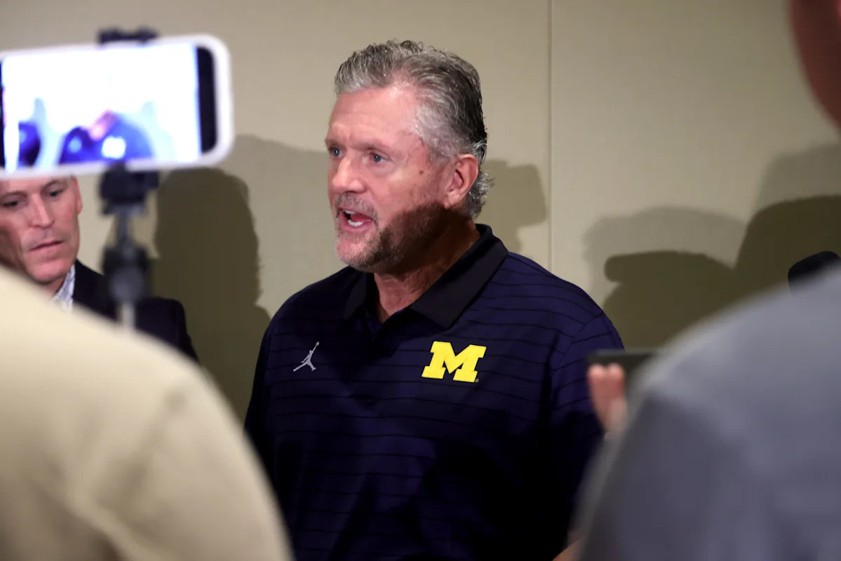 ORLANDO, FLORIDA – DECEMBER 28: New Michigan Wolverines head football coach Kyle Whittingham talks with the media after a news conference at the Hyatt Regency Orlando on December 28, 2025 in Orlando, Florida. (Photo by Dustin Markland/Getty Images)