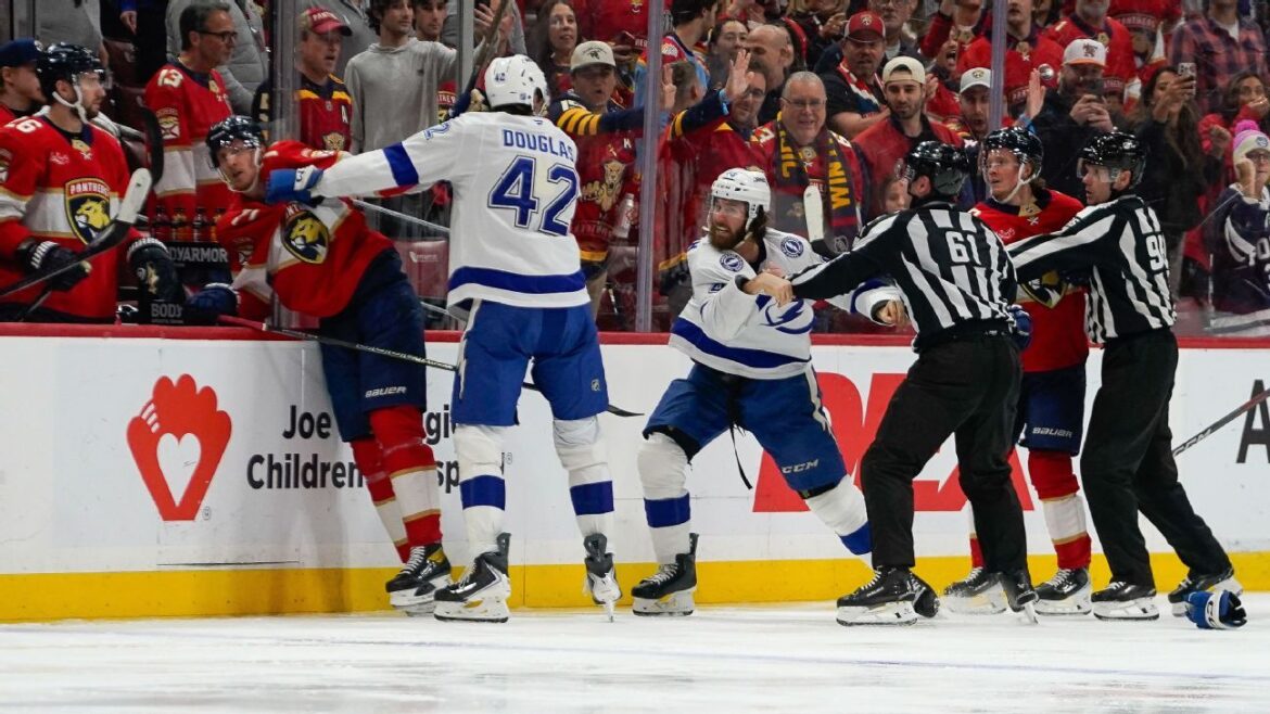 FORT LAUDERDALE, Fla. — The NHL fined Florida‘s Anton Lundell and Tampa Bay‘s Scott Sabourin for their actions in Saturday’s game between the Panthers and Lightning, one where the teams combined for the highest penalty total the league has seen since 2011.