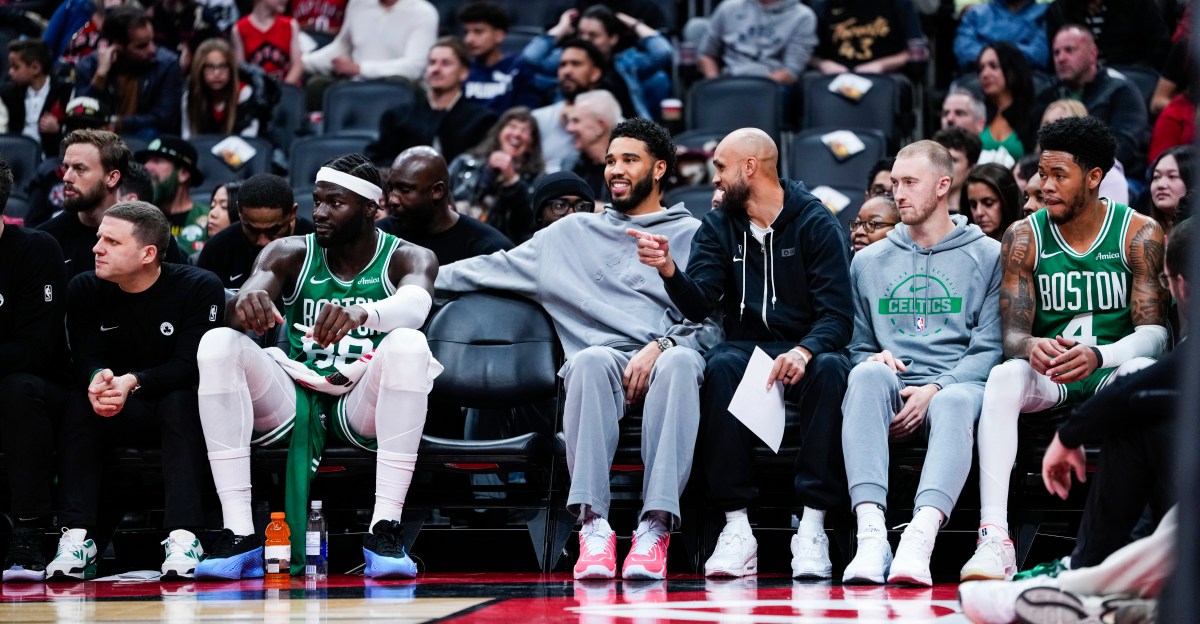 Steve Tchiengang, one of the Celtics’ player enhancement coaches, partook in drills as a screener and passer, as did Tatum’s former Duke University teammate, Celtics assistant coach Amile Jefferson. Tatum’s trainer, Nick Sang, took the floor to watch.