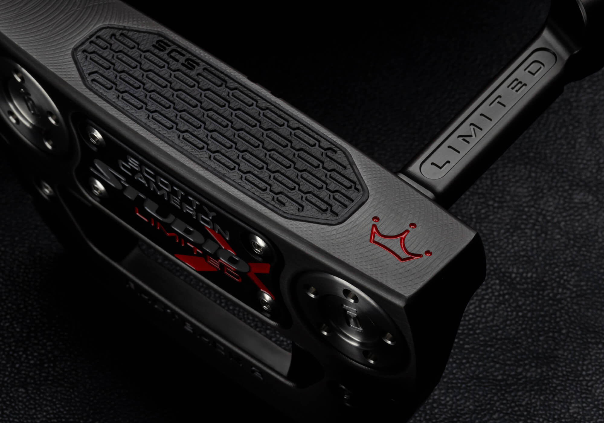 The Cameron crew has altered some of the stock elements for this release. The SCS insert is plated with a black-nickel finish. A dark steel gray PVD coating covers the stainless-steel parts of the putter.