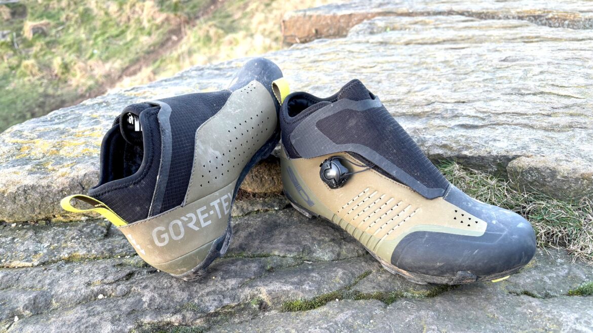 It’s the versatility of the Hiemx that I really like, especially for early morning or evening rides, or for when the trails are a bit damp. The extra height on the ankle and the Gore-Tex lining keep most of the water out (Some will always come down your shins in a downpour and into the shoe), and for splashing through puddles and general off-road riding, they keep you warm and drier than you would be in a racier shoe. They feel efficient and not too heavy either, which means they feel much like a regular shoe on the bike, too.
