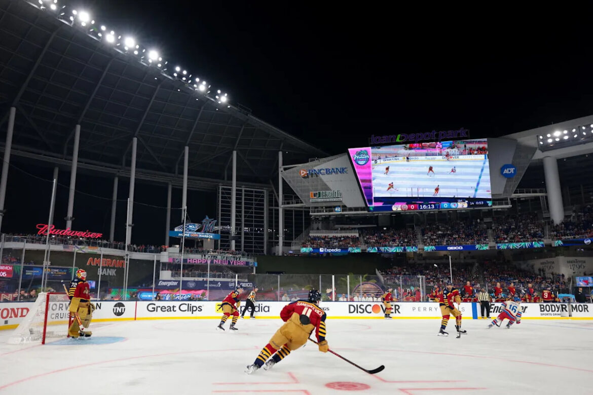 Photo caption: Jan 2, 2026; Miami, Florida, USA; The Florida Panthers play against the New York Rangers during the first period in the 2026 Winter Classic ice hockey game at loanDepot Park. (Sam Navarro-Imagn Images)