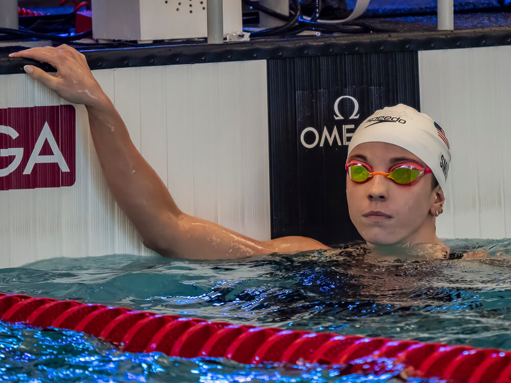 Nation’s Capital’s Skyler Smith sprinted to the top seed in the 50 breaststroke, getting to the wall in 31.04 to hold off Texas’ Anna Elendt (31.08).