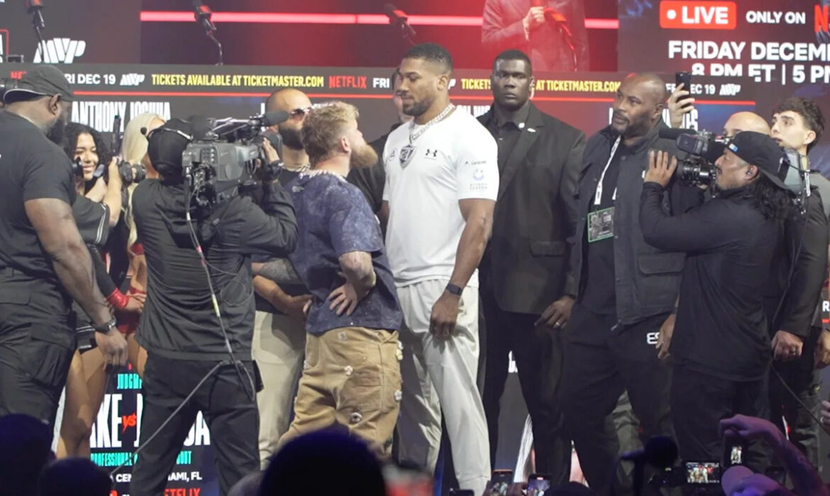 MIAMI – Jake Paul and Anthony Joshua faced off for the first time during fight week after the Wednesday’s pre-fight press conference.