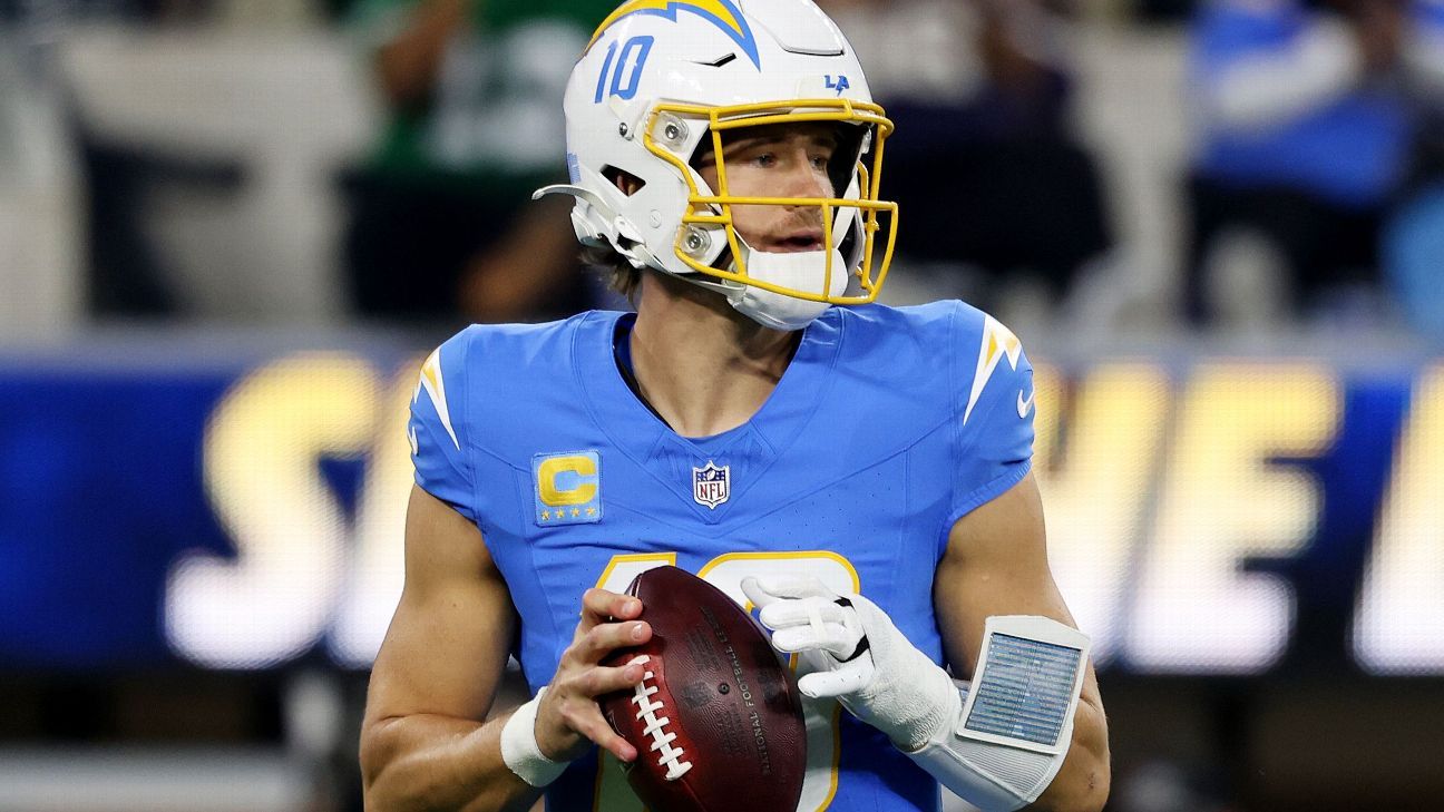 Matchups highlight: Justin Herbert, Los Angeles Chargers (at Dallas Cowboys). In two games since surgery for a broken bone in his left (non-throwing) hand, he has totaled 22.20 fantasy points, but consider the context. Coach Jim Harbaugh has employed a more run-centric offense as a means of protecting his quarterback, his Chargers rushing on 50% of offensive plays after 42% in their first 12 games, and Herbert’s matchups were two of the league’s five toughest, going by Adjusted FPA for the season. While Harbaugh might still take steps to ease Herbert’s burden this week, the quarterback’s matchup couldn’t be much more favorable. The Cowboys have allowed a league-most 6.9 Adjusted FPA for the season, and they’ve seen three straight quarterbacks score 23-plus fantasy points.
