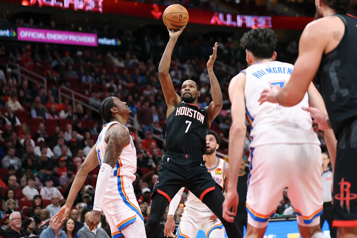 Kevin Durant struggled to find clean looks against Oklahoma City on Thursday, a snapshot of Houston’s growing offensive issues.