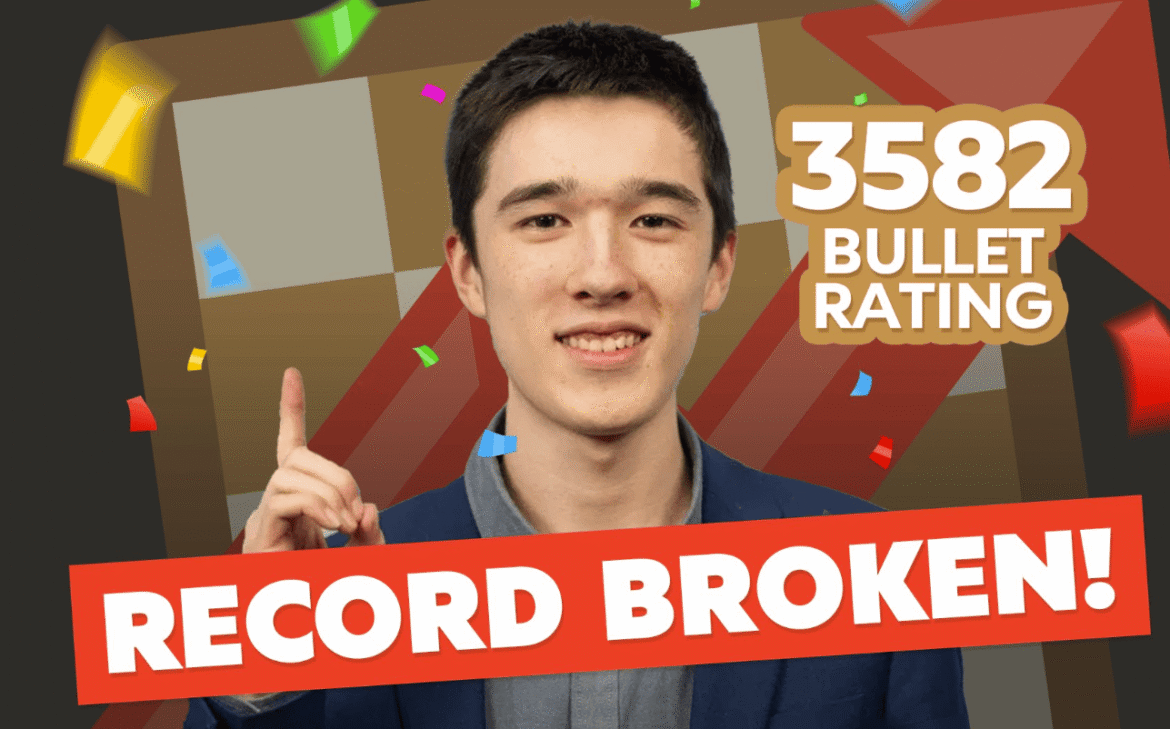 On February 14, 15-year-old American GM Andy Woodward broke the Chess.com bullet rating record, previously held by GM Hikaru Nakamura. Nakamura set the previous record of 3570 on November 11, 2020, meaning that it stood for more than five years. Woodward, the recent winner of the Tata Steel Chess Challengers tournament, broke the record by winning a remarkable 25 hyperbullet games in a row.